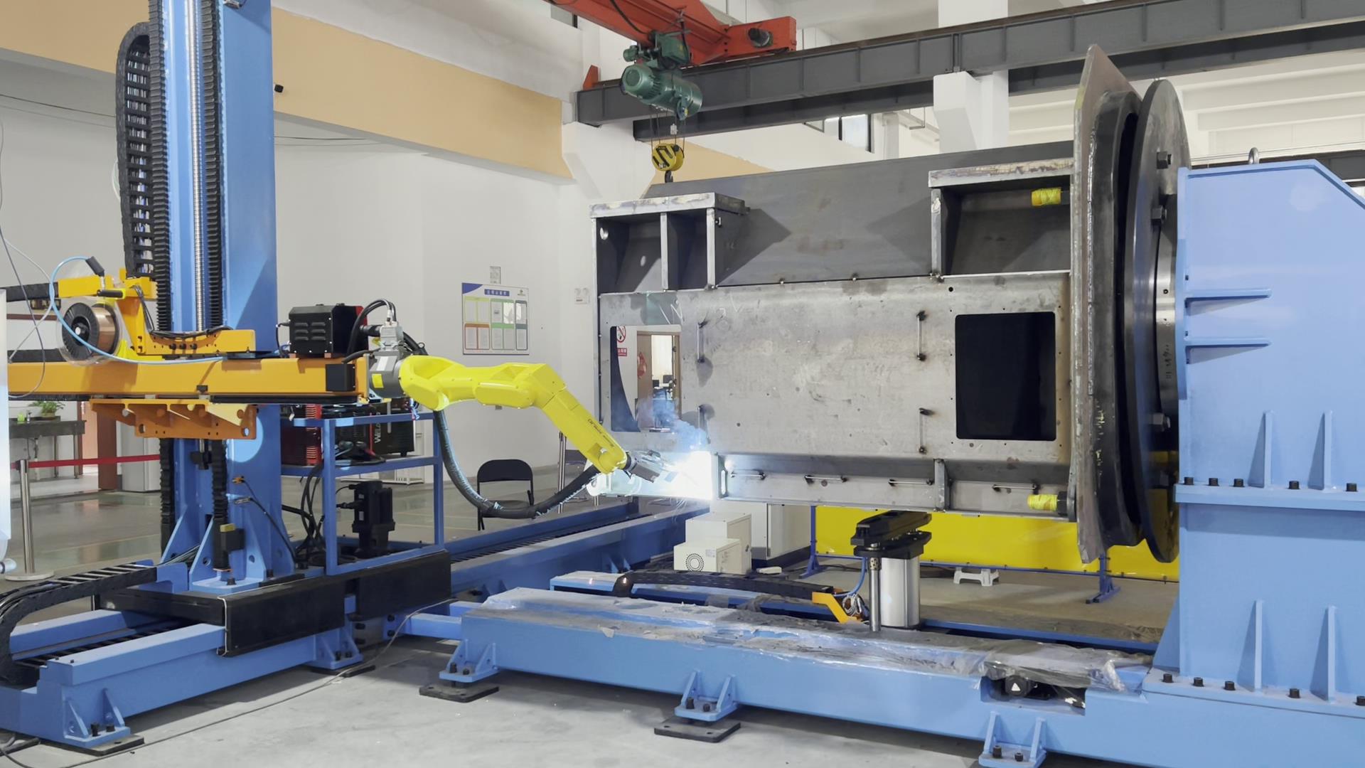 智能焊接在鍋爐/壓力容器行業的成功應用 鍋爐吊桿的耳板,多為坡口多層多道的焊接工藝要求,針對耳板的焊接需求,威卓設計了耳板焊接小產線--整個